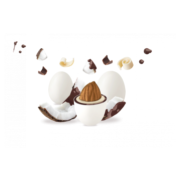 Realizzati con mandorle tostate selezionate (18%), sono avvolti da un doppio strato di cioccolato bianco (30%) e cioccolato al latte (30%), arricchiti da un delicato aroma di cocco e rifiniti con una sottile glassatura di zucchero.