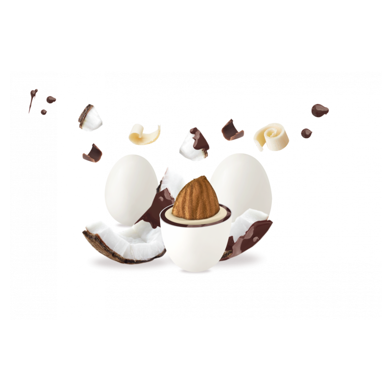 Confetti bianchi alla mandorla tostata senza glutine, ricoperti da cioccolato bianco e al latte al gusto di cocco e rifiniti da un sottile strato di zucchero. Un mix delicato e raffinato che unisce cremosità e croccantezza. La confezione contiene tra 130 e 150 pezzi ed è dotata di pratico talloncino ritagliabile con le specifiche del prodotto, ideale per bomboniere e contenitori personalizzati. Perfetti per matrimoni, eventi eleganti e confettate classiche.